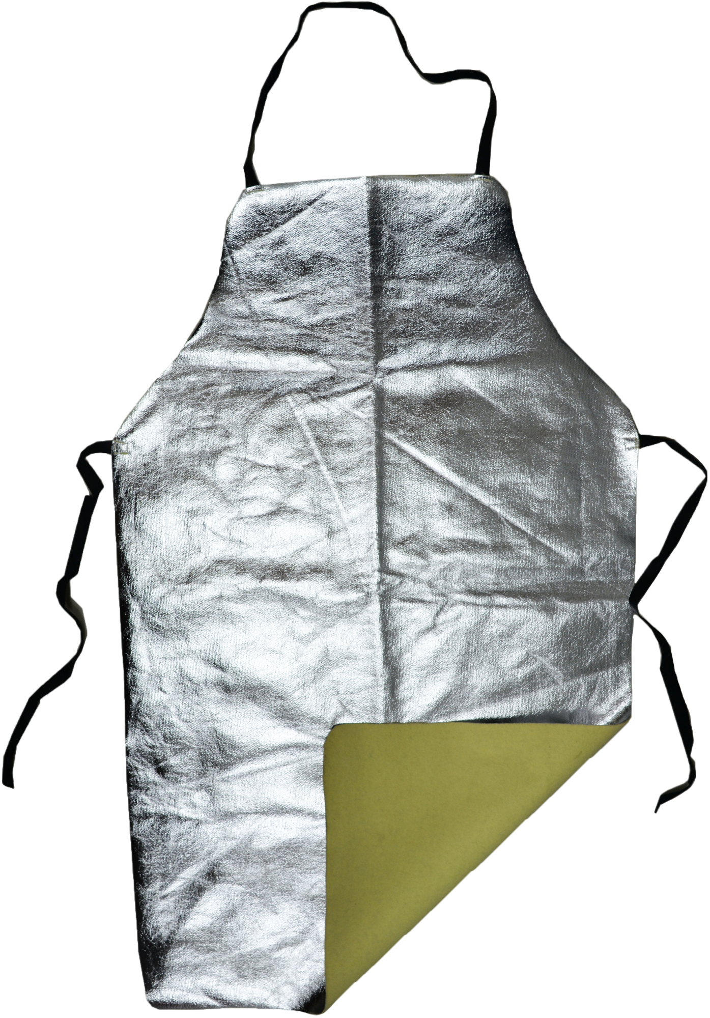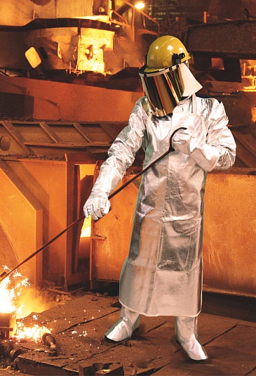 Aluminized apron coated with the use of vacuum aluminization technique provides an excellent protection against sparks and molten metal splashes. Piled backside forms an additional air layer that prevents sweating in high ambient temperatures and keeps the body warm in low temperatures.