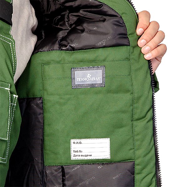 Jacket with double-slider zipper and a storm flap. Funnel neck collar is lined with fleece insulation (manufactured in Spain). Patch side heat-insulated pockets with flaps, inside pocket for documents. Waist and bottom hem drawstrings – for extra wind protection. Sleeves with wool blend rib-knit cuffs. Detachable heat-insulated hood.