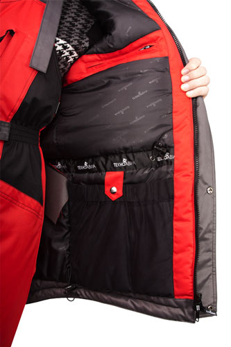 Central double-slider zipper and a storm flap. Waist and bottom hem drawstrings for extra wind protection. Reinforcement patches in shoulder area, sleeves bottom and at the sides of the jacket for extra durability. Breast and side slash pockets, inside pockets, zippered pocket in the forepart.