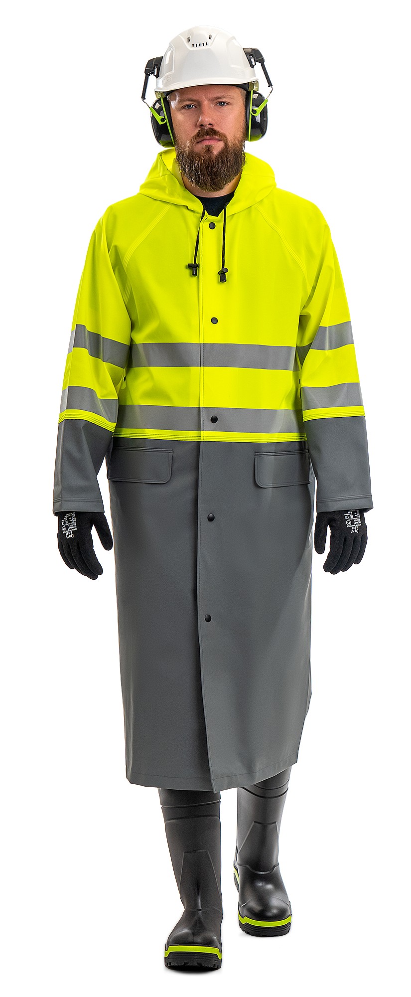 High-visibility coat for protection against crude oil and oil products, water and wind!