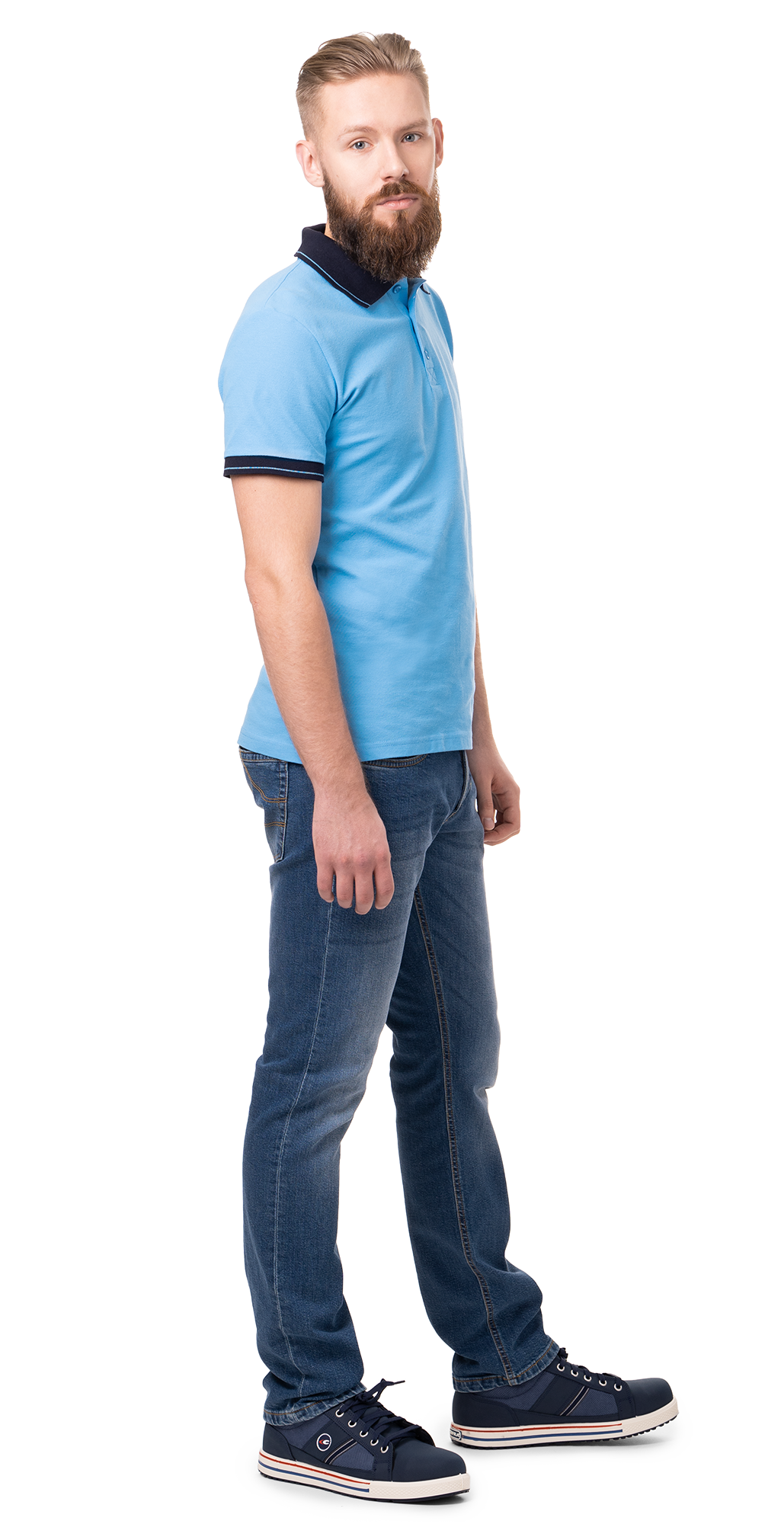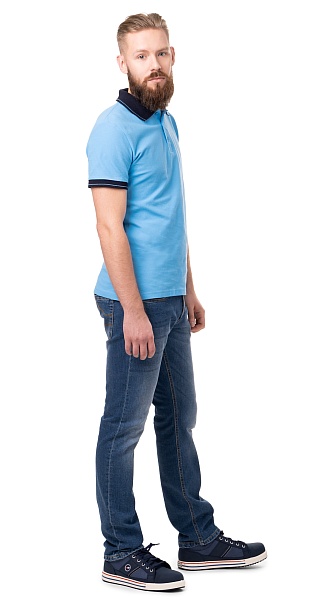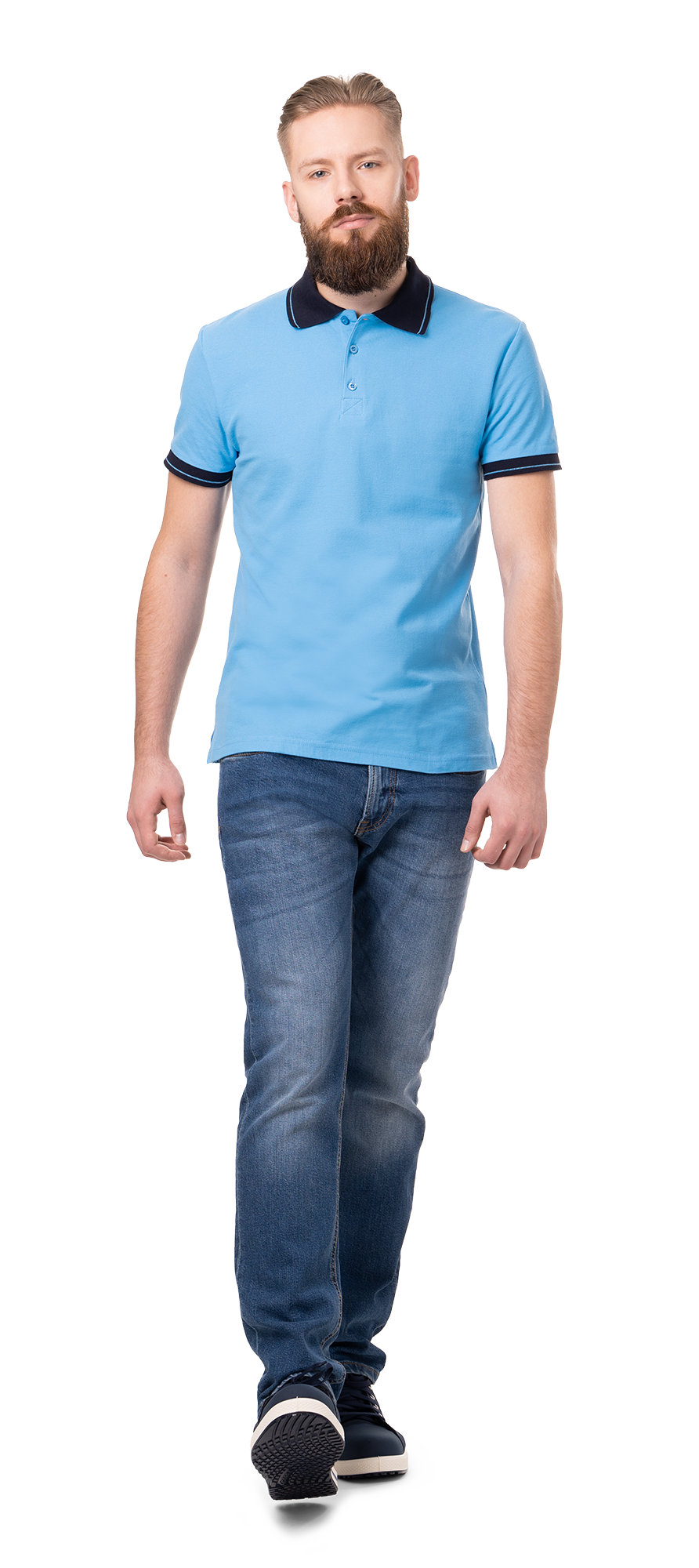Color: light blue, trimming - dark blue. Fabric: 100% cotton, density: 180 g/m2. Sizes: XS to 7XL (88/158-164 to 128/182-188).