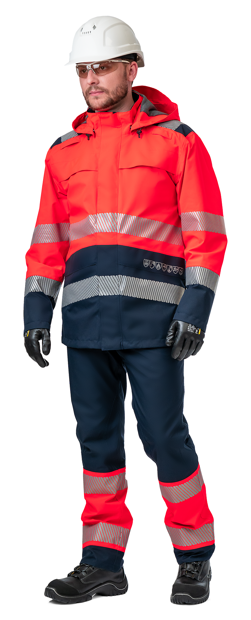 - Special sleeve design (outside elbow seam) allows for extra volume in the elbow area facilitating work despite tight layers of fabrics.