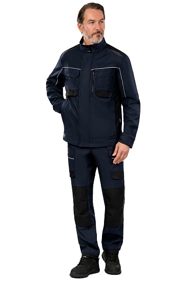 - The anatomically cut sleeves correspond to the basic position of the arms when working.
