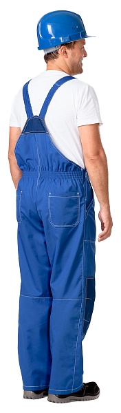 Side closure and zippered flypiece in the middle seam for convenience. Multipurpose pockets and a loop holder for tools, knee areas reinforced with darted patches for extra durability and to prevent chafing.