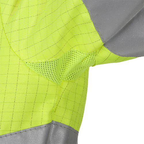 Trim: cotton-rich blend LUMINEX C-STAT (50% cotton / 50% polyester), including antistatic yarn Nega-Stat®, with oil-water repellent finish, density