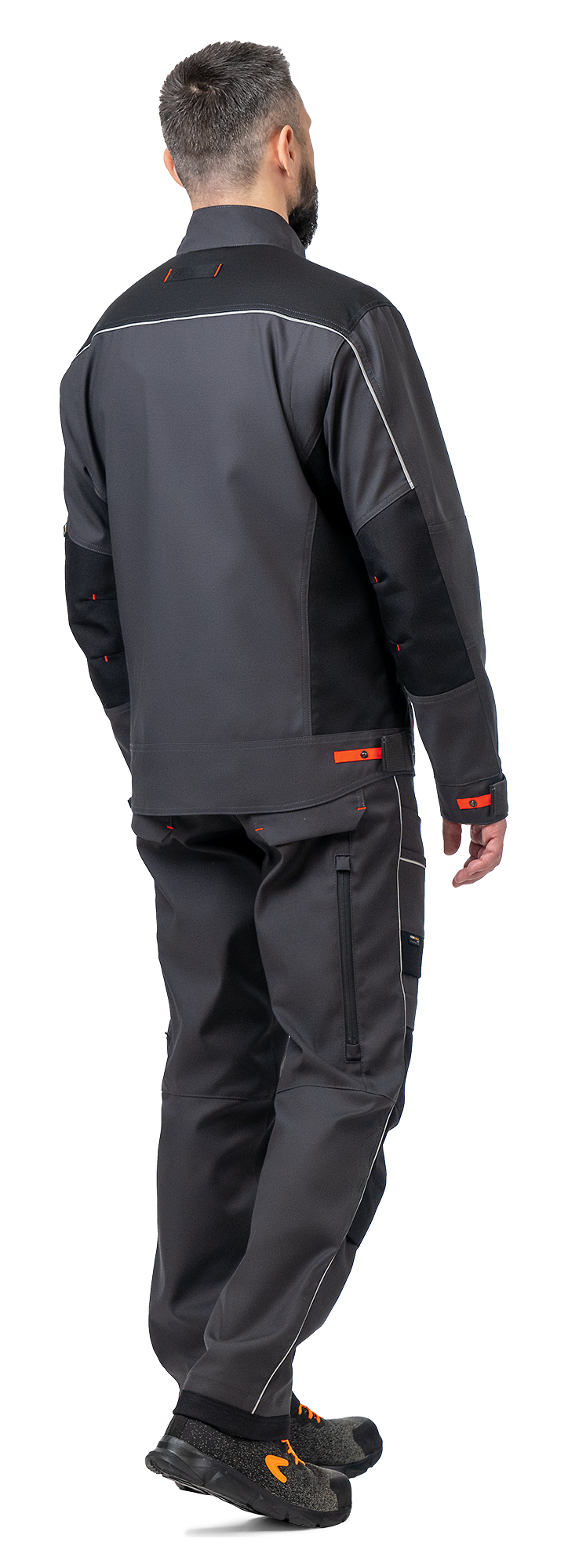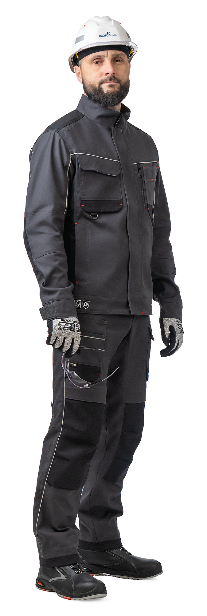 - Anatomically cut sleeves correspond to the main position of the hands during work.