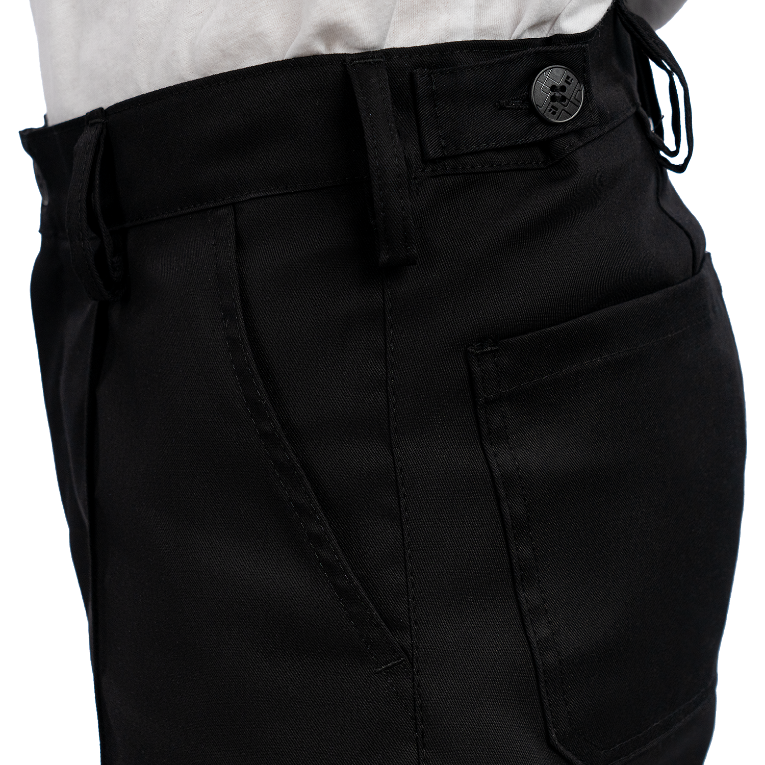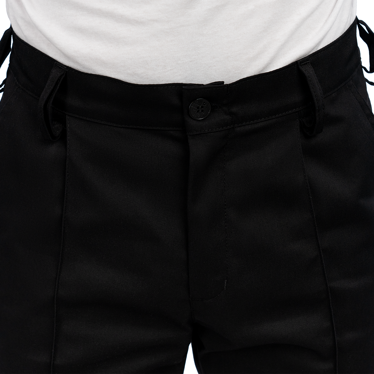 - Zip fly and button closure on the waistband.